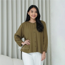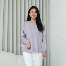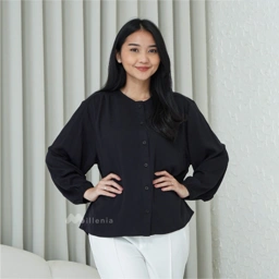 Features - Kerah bulat - Lengan panjang - Full button - Bahan flowy