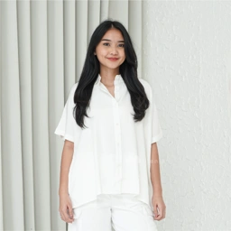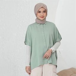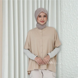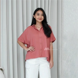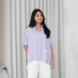 Features - Kemeja berkerah - Lengan pendek - Full button - Bahan flowy