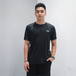 Features: - Kerah bulat - Lengan pendek - Bahan stretch/melar